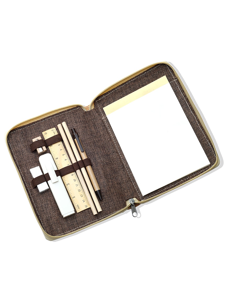 Description : Eco Friendly Cork Material Stationary Set in zipper pouch the set contains: