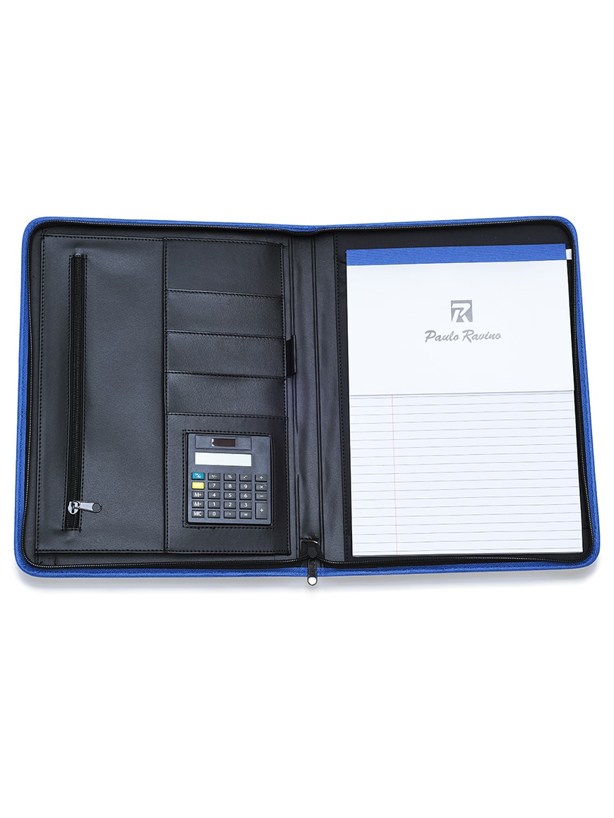 Description : A4 PU Leather folder – with zipper with certificate and document holder with zipper with business card holder + credit card holder slots with pen holder, calculator and notepad.